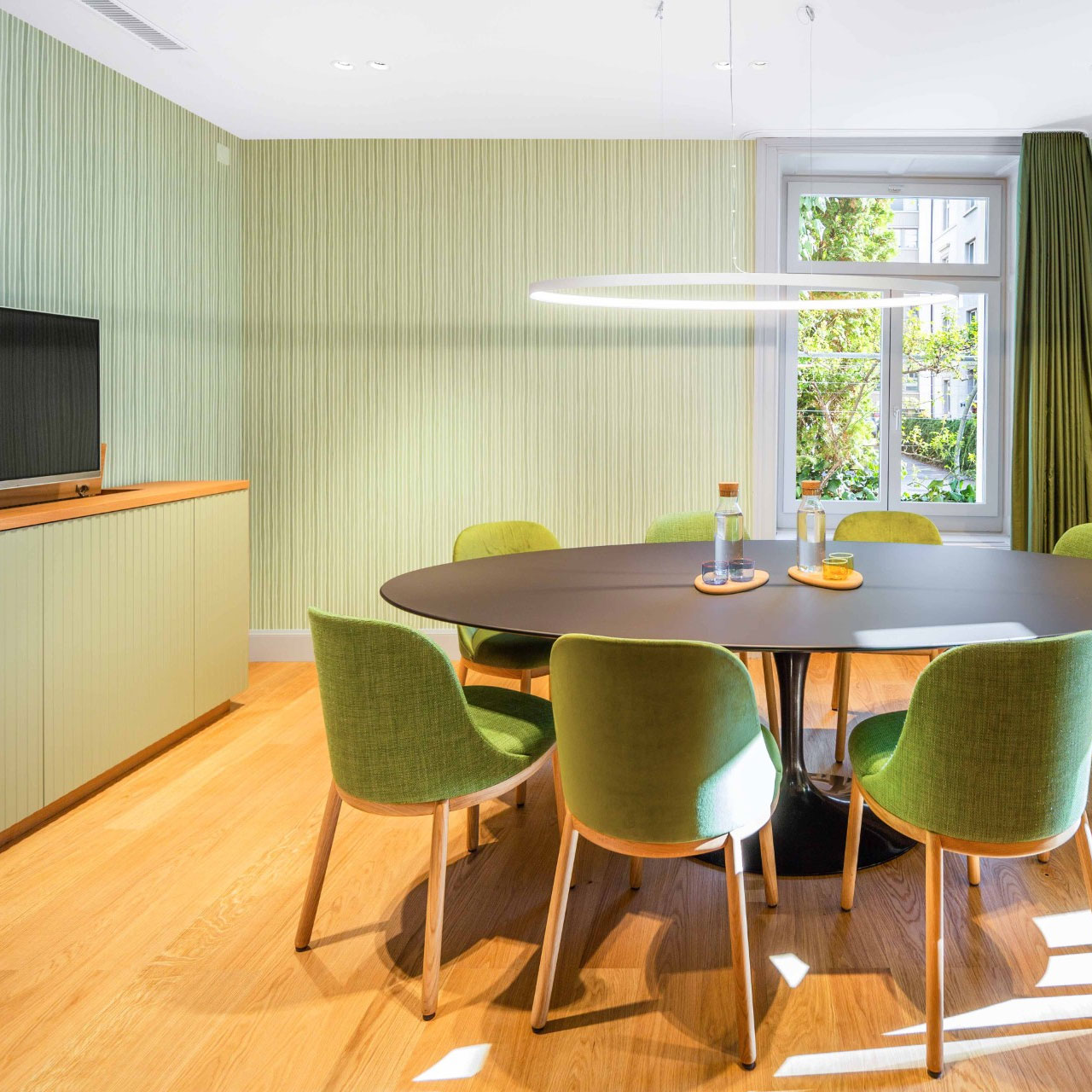 Dank der hochwertigen Ausstattung, der harmonischen Atmosphäre und der flexiblen Nutzungsmöglichkeiten bietet Raum D den perfekten Rahmen für produktiven Austausch in einem exklusiven und gepflegten Umfeld.
