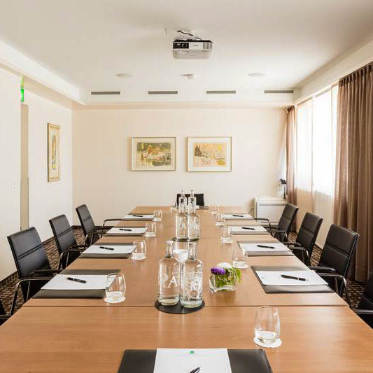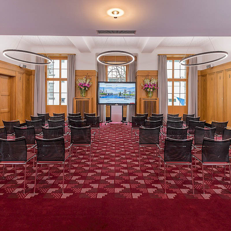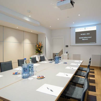 Der Seminarraum fasziniert mit seiner Einfachheit und Vornehmheit. Der erstklassige Holzboden harmoniert perfekt mit modernster Präsentationstechnik und macht den Raum ideal für strategische und exklusive Sitzungen.